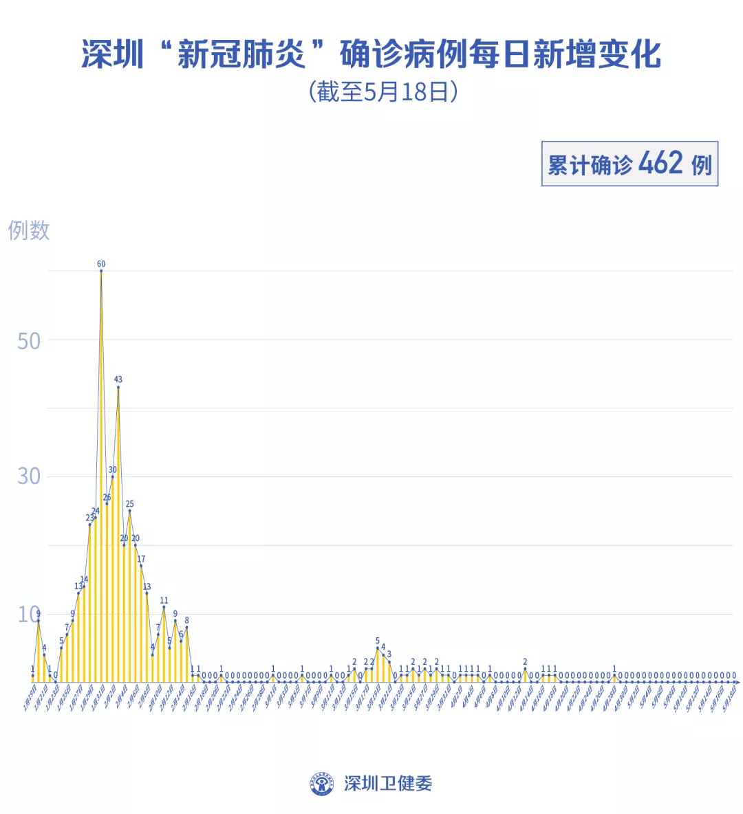 截至5月18日24時,深圳累計報告新冠肺炎病例462例。