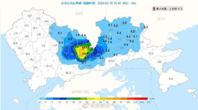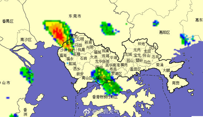 15時(shí)49分:目前降雨云團(tuán)移動(dòng)緩慢,正影響龍崗和龍華地區(qū),請(qǐng)小伙伴們注意防御,盡量減少外出。