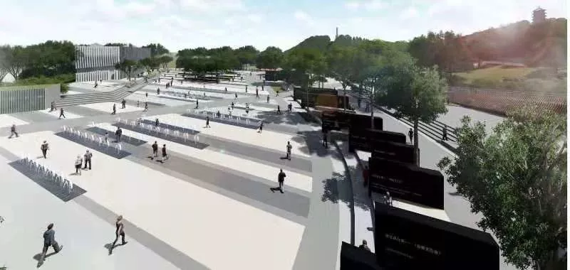革命烈士紀念軸延續(xù)繼承場所精神,保留了公園原有的烈士紀念碑,側(cè)面印證我國民法的曲折發(fā)展歷程?!扒笆轮煌?,后事之師”,緬懷英雄烈士。