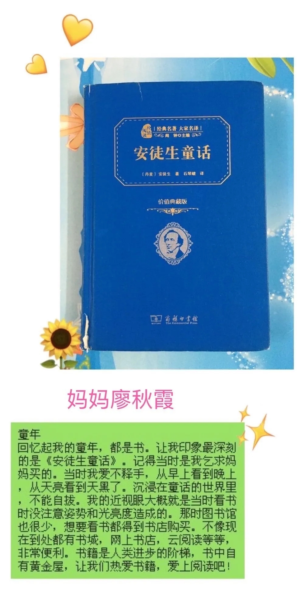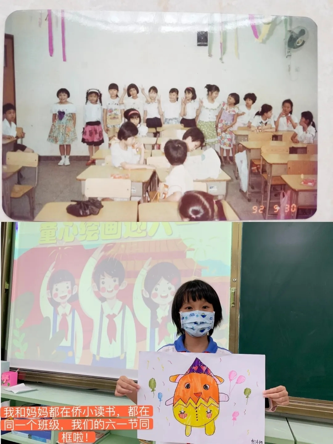 在這快樂的節(jié)日里,我也讓媽媽和我分享了她記憶中的六·一,她好好思考了一會(huì)兒說(shuō):"還是非常巧的,記憶最深的六·一,也是和你同歲的那一年,那是我在重慶老家過(guò)的最后一個(gè)六·一。記得當(dāng)日穿上了最漂亮的衣服,戴上了紅領(lǐng)巾,早早就去了學(xué)校,在簡(jiǎn)單的慶?;顒?dòng)后,就由老師帶領(lǐng)成績(jī)優(yōu)秀的同學(xué)到公社的禮堂去看慶祝表演活動(dòng),從學(xué)校走到公社要一個(gè)多小時(shí),大家一邊走一邊唱《快樂的節(jié)日》,非常的歡樂,感覺自己好似真的變成小鳥了,在會(huì)場(chǎng)里每位同學(xué)都收到了一個(gè)驚喜的小禮包,三十幾年過(guò)去現(xiàn)在回想起來(lái)快樂的感覺仍很深刻!好似六·一的感覺就停頓在那個(gè)時(shí)候,后來(lái)在深圳過(guò)的六·一印象反而都模糊了。”