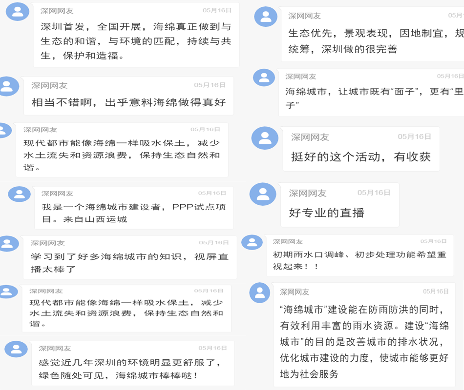 見圳客戶端·深圳新聞網(wǎng)2020年6月5日(見圳客戶端、深圳新聞網(wǎng)記者 葉梅)5月16日,深圳市海綿城市建設工作領導小組辦公室聯(lián)合深圳新聞網(wǎng),在深網(wǎng)直播平臺對《深圳市海綿城市建設2019年度優(yōu)秀經驗分享會暨2020年度海綿城市獎勵申報啟動儀式》進行了線上全程直播。為答謝深圳網(wǎng)友對直播的全程關注,我們在后臺挑選出100位網(wǎng)友的精彩留言,為大家送上U盤一個,請在截圖中留言的網(wǎng)友于一周內(6月12日前)自主撥打聯(lián)系人電話認領禮品。