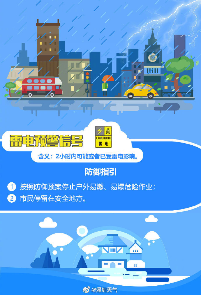 深圳市氣象臺于2020年06月05日11時(shí)15分在全市發(fā)布雷電預(yù)警,預(yù)計(jì)2小時(shí)內(nèi)全市將受雷電影響,市民停留在安全地方;按照防御預(yù)案停止戶外易燃易爆危險(xiǎn)作業(yè),并加強(qiáng)?;瘓鏊踩芾怼?/p>