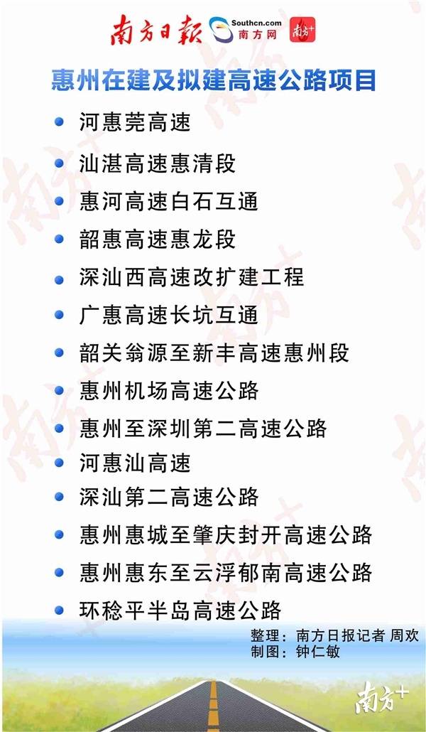 今年惠州市政府工作報告明確,將建成河惠莞高速惠州段、汕湛高速惠清段、惠河高速白石互通,加快建設(shè)韶惠高速惠龍段、深汕西高速改擴(kuò)建工程、廣惠高速長坑互通,啟動環(huán)稔平半島高速公路建設(shè)。同時,將加快惠州千萬級干線機(jī)場規(guī)劃建設(shè)。