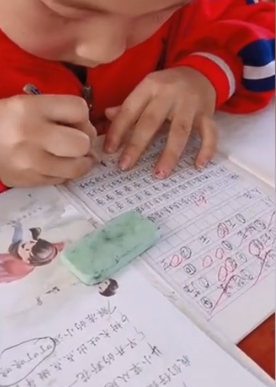 前兩天,小編就看到了這個(gè)聽(tīng)寫(xiě)前,虔誠(chéng)地將知識(shí)“捧進(jìn)”腦子的小盆友: