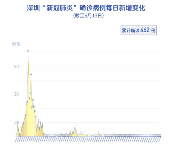 截至6月13日24時,深圳累計報告新冠肺炎病例462例。