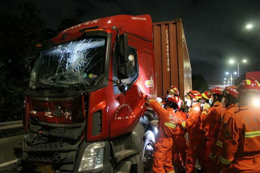 IN視頻|龍大高速貨車追尾駕駛員被困 消防員破拆車門進(jìn)行救援