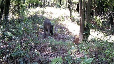 在紅外相機監(jiān)控中,最活躍的就是野豬了。它們常常成群結(jié)隊地在山林里撒歡捕食,粗略估計,梧桐山上的野豬不少于50頭,大個兒的體重估計有一百多斤。