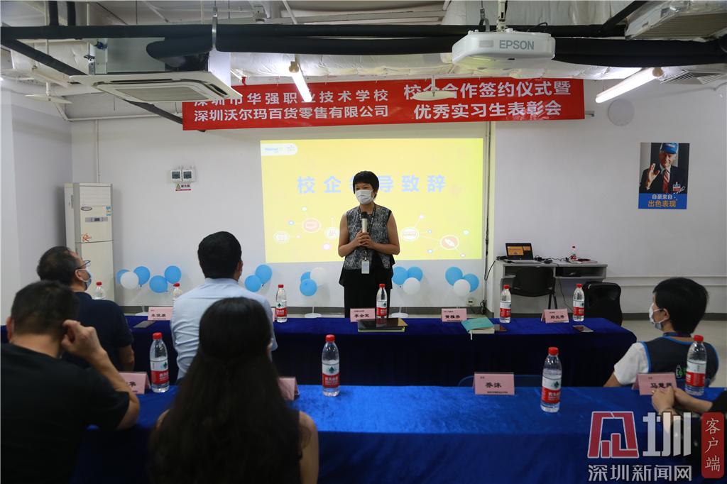 見圳客戶端·深圳新聞網(wǎng)2020年6月24日訊(記者 曹園芳 通訊員 沈琳 喬沐)昨天下午,深圳市華強(qiáng)職業(yè)技術(shù)學(xué)校與深圳沃爾瑪百貨零售公司簽訂校企合作協(xié)議。趙盟校長、朱俊康副校長、西校區(qū)王中華主任、校企合作辦黃琳主任、商貿(mào)部喬沐部長、財經(jīng)部馬慧連副部長、辦公室沈琳老師及學(xué)校優(yōu)秀實(shí)習(xí)生代表出席了簽約儀式暨優(yōu)秀實(shí)習(xí)生表彰會。