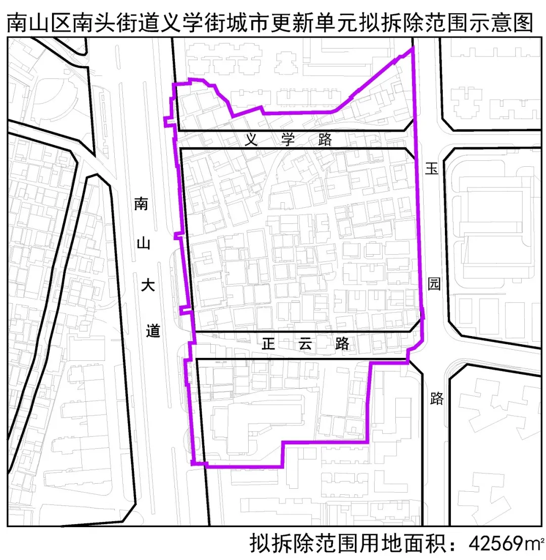 △南山區(qū)南頭街道義學街城市更新單元擬拆除范圍示意圖