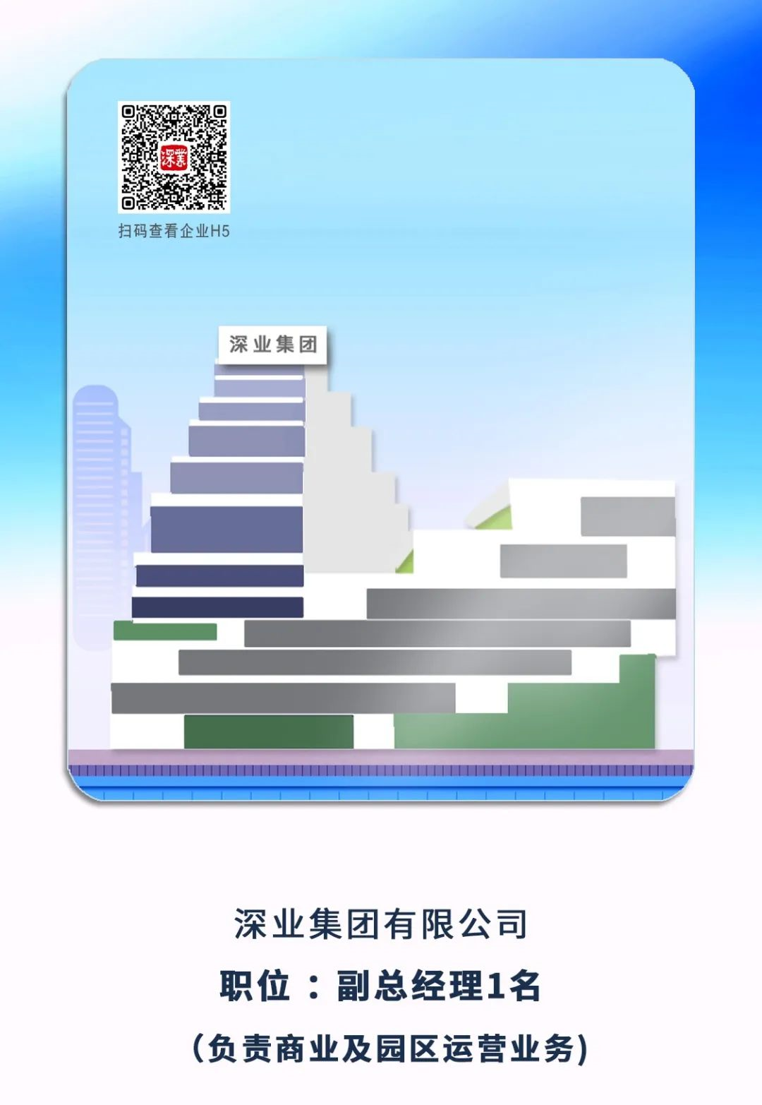 3、深業(yè)集團(tuán)有限公司副總經(jīng)理1名(負(fù)責(zé)商業(yè)及園區(qū)運(yùn)營(yíng)業(yè)務(wù))