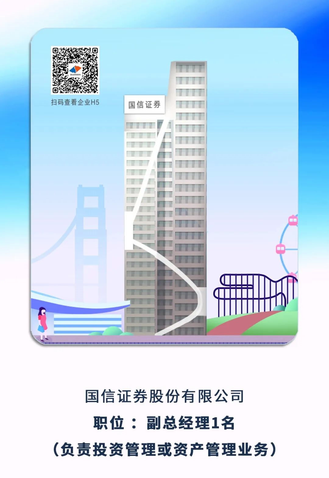 5、國(guó)信證券股份有限公司副總經(jīng)理1名(負(fù)責(zé)投資管理或資產(chǎn)管理業(yè)務(wù))