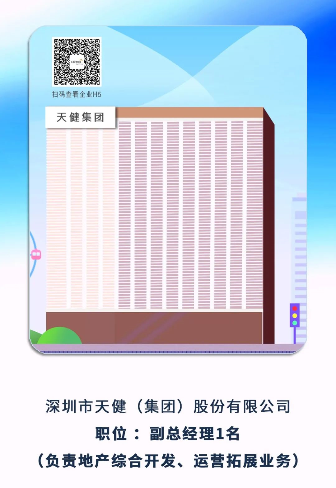 6、深圳市天健(集團(tuán))股份有限公司副總經(jīng)理1名(負(fù)責(zé)地產(chǎn)綜合開(kāi)發(fā)、運(yùn)營(yíng)拓展業(yè)務(wù))