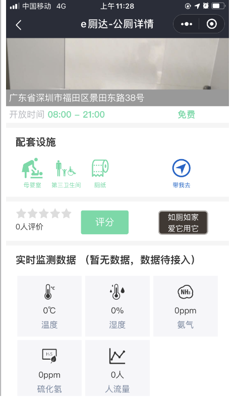 第二個功能是查看廁所情況。如果市民想知道廁所是否爆滿,有沒有母嬰室,衛(wèi)生情況如何,點擊任意廁所可查看每座公廁的詳細(xì)情況。