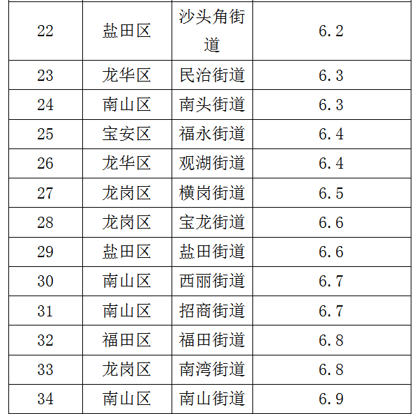 今年6月,全市74個(gè)街道PM2.5濃度在5.0-10.2微克/立方米之間,均值為7.0微克/立方米。排名前十的是:福保、福海、海山、西鄉(xiāng)、南園、清水河、粵海、石巖、石井和蓮花等街道,排名倒數(shù)前十的是:觀瀾、坪地、龍?zhí)?、大浪、馬田、公明、龍崗、龍華、沙井和鳳凰等街道。
