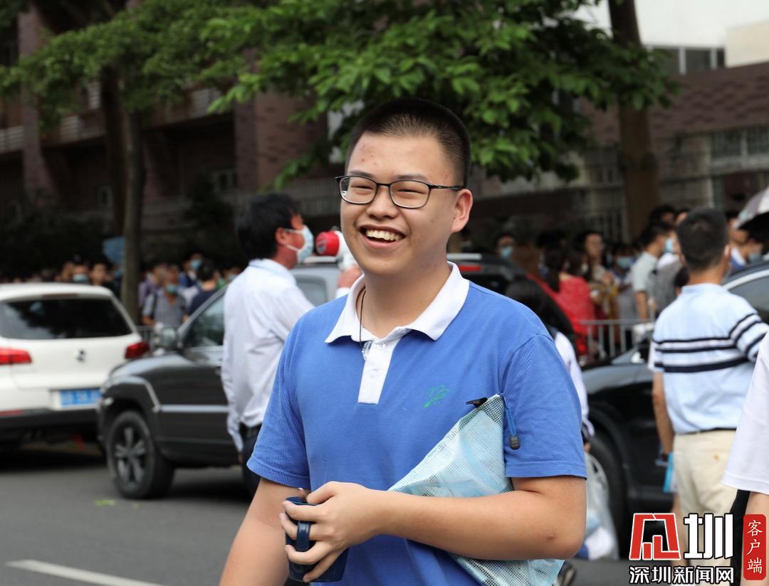深圳高級中學(xué)考點(diǎn)外考生自信滿滿走出考場。