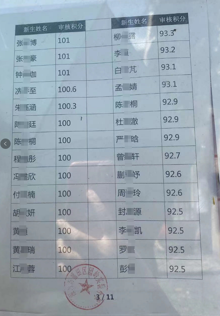 下面來看一波網(wǎng)友實拍錄取名單和學校的錄取分值圖↓