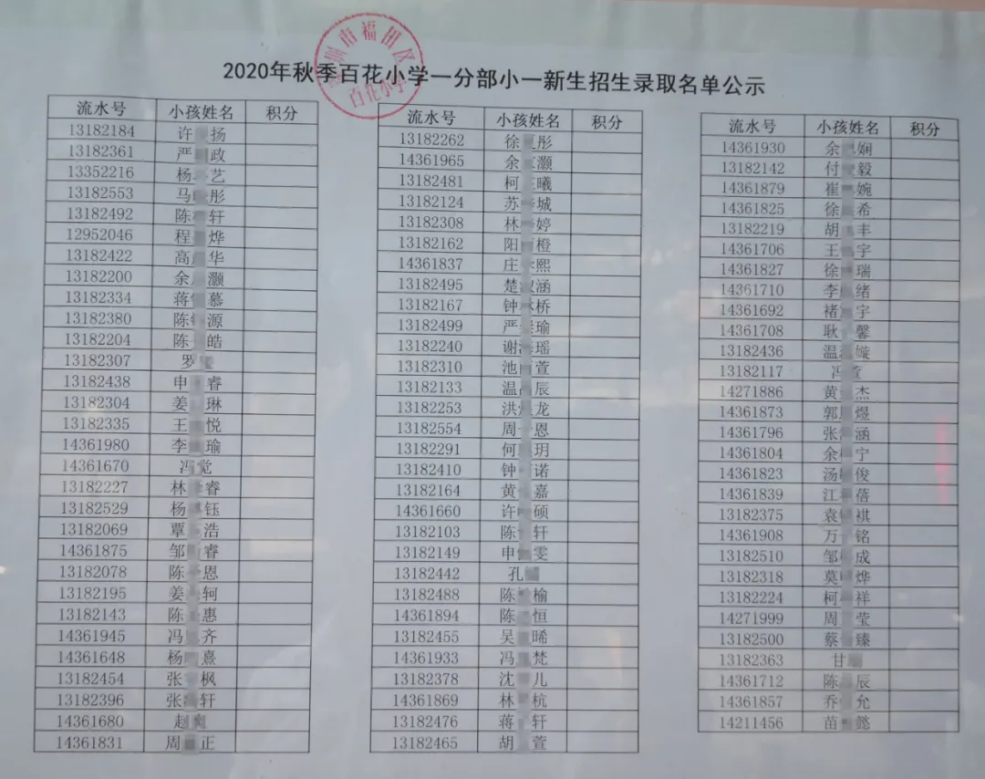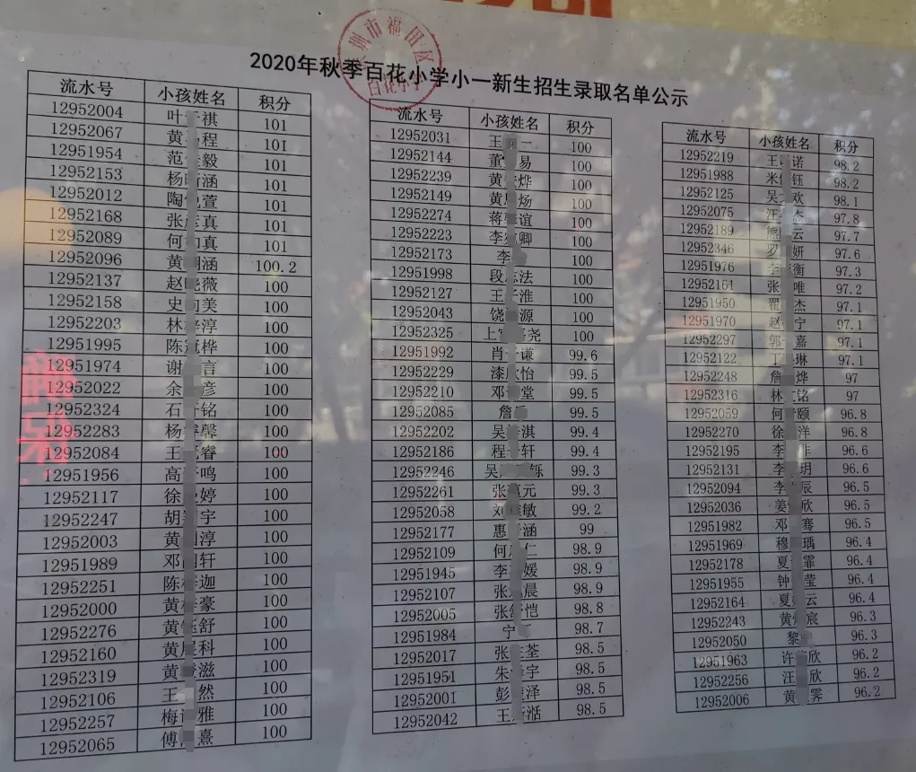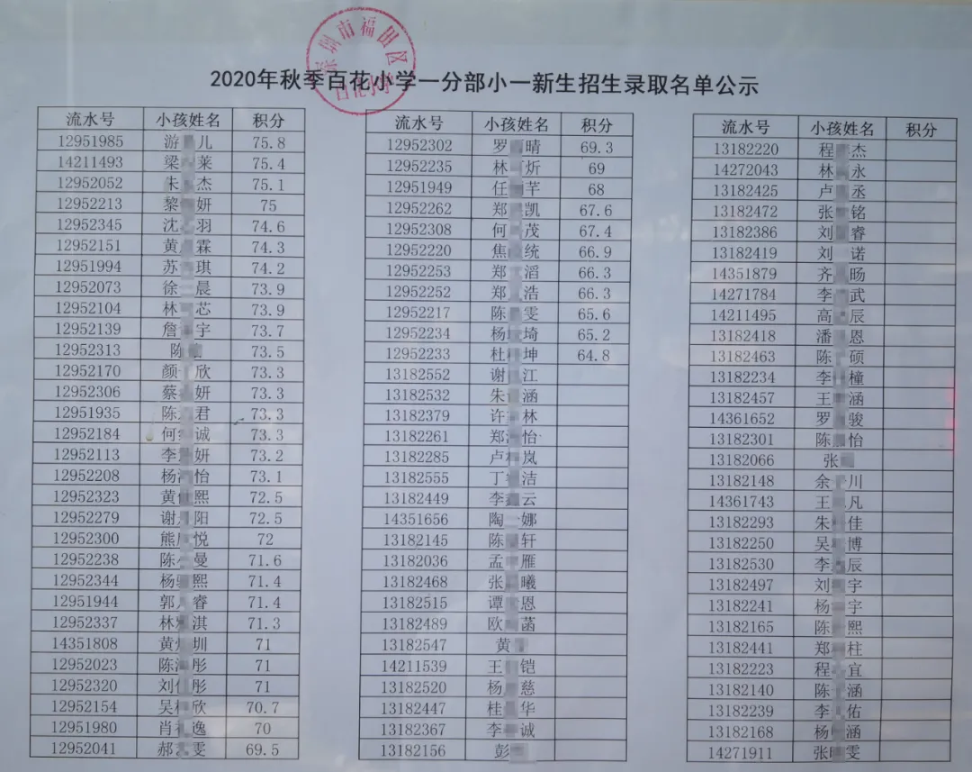 小一家長們關(guān)心的2020年公辦小一年級新生報名積分錄取名單今天開始放榜啦。