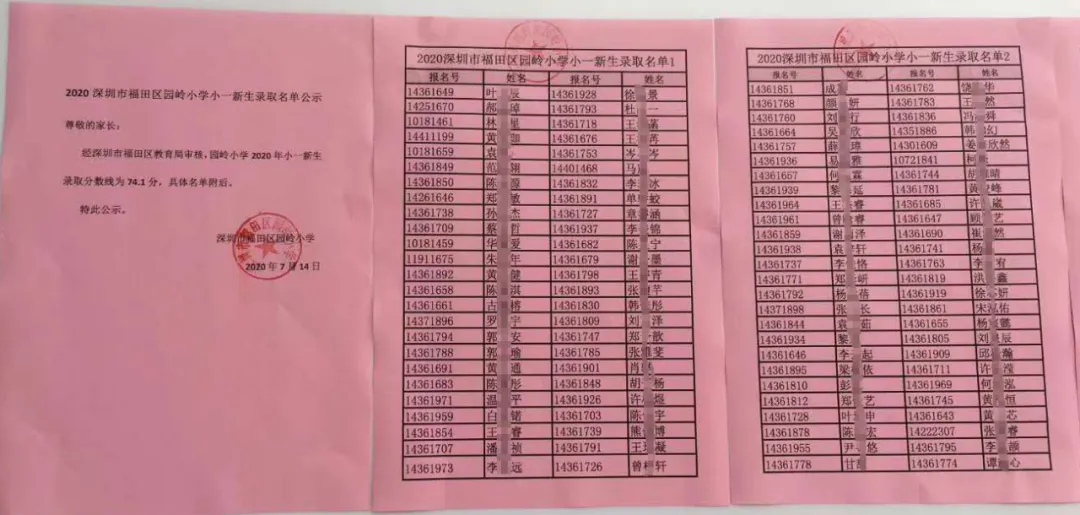 2020年福田區(qū)公辦小一新生錄取名單來了,部分學校最低錄取積分曝光