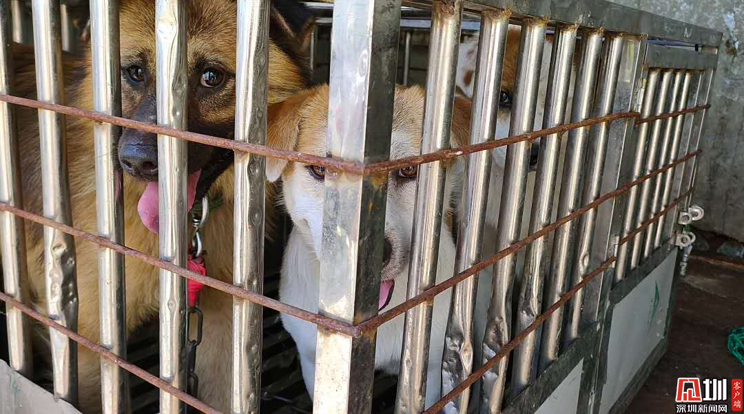 暫扣拘留的違規(guī)犬只。