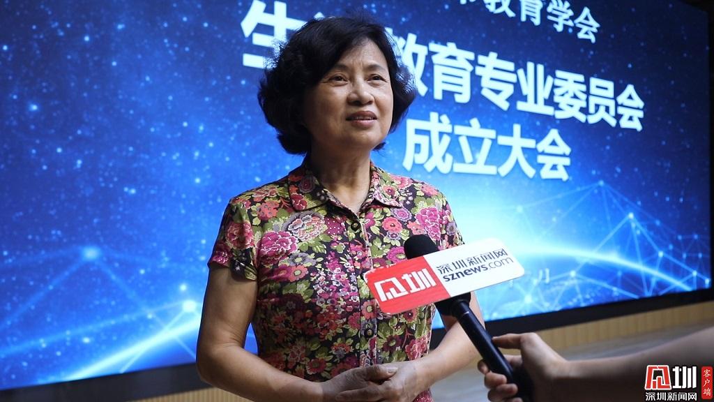 深圳市教育學(xué)會(huì)會(huì)長(zhǎng)金依俚接受記者采訪。