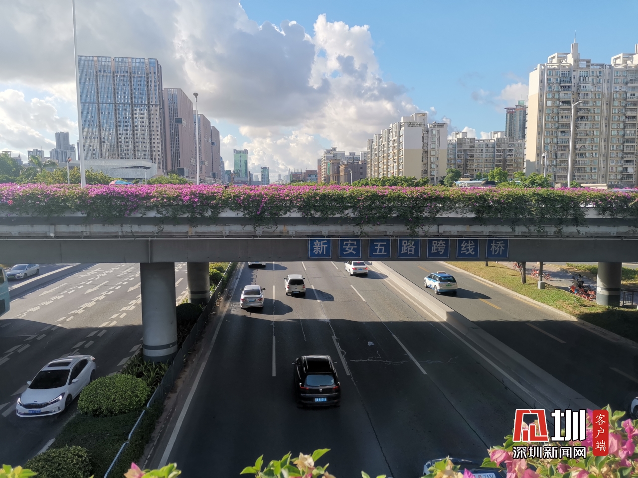【廣深公路】上午8時(shí),記者在位于新安五路和廣深公路的天橋拍攝實(shí)時(shí)交通情況,目前廣深公路的車(chē)流沒(méi)有造成擁堵。