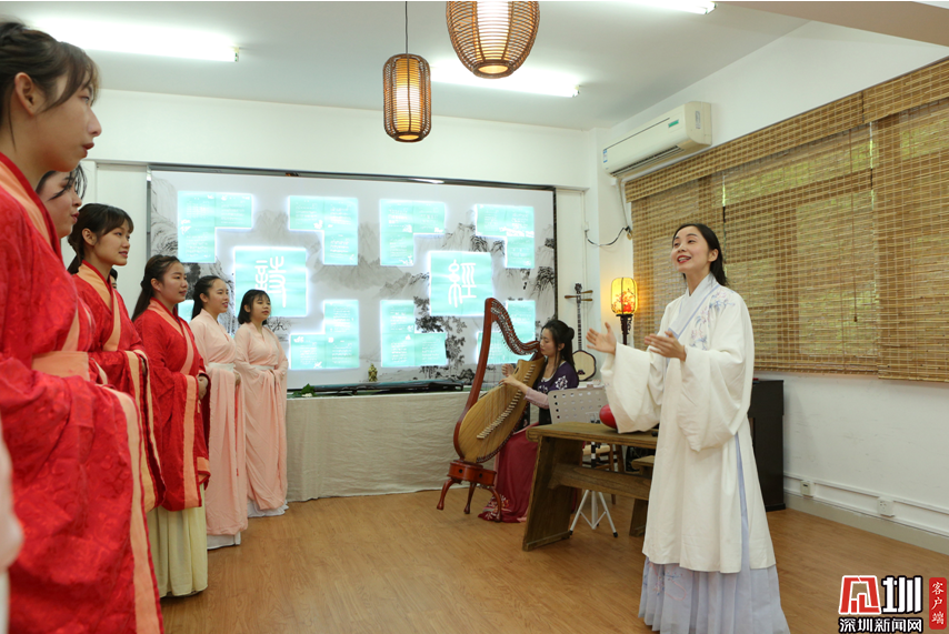 深信院師生在風雅頌詩經(jīng)文化傳承基地演唱。