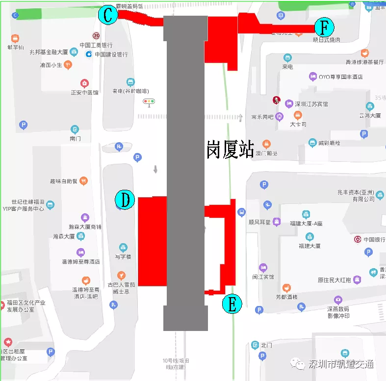 ▲圖2:崗廈站出入口分布示意圖