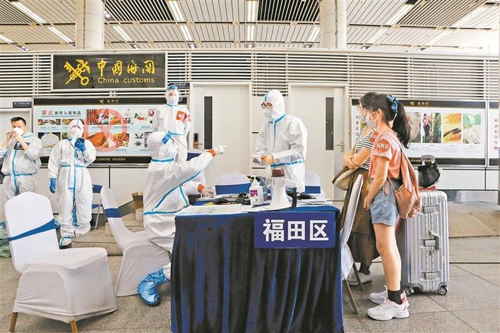 深圳灣口岸,按規(guī)定需要集中隔離醫(yī)學觀察的入境旅客在工作人員的帶領下分區(qū)搭乘巴士前往隔離點。(來源:深圳特區(qū)報)