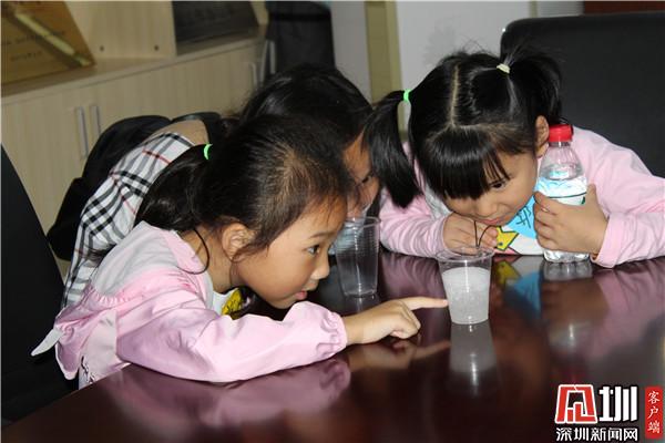 30位社區(qū)青少年年紀(jì)最小的6歲,最大的12歲,有的是跟家長(zhǎng)一起,有的是兄弟姐妹一起來(lái),他們認(rèn)真聽課,積極參與實(shí)驗(yàn),眼看著普普通通的自來(lái)水,加入一種化工原料,就從液體變成了顆粒狀,霏霏小朋友張大了嘴巴驚呼:“好神奇?。 痹诶蠋煹闹v解下,他們知道了其中的原理,同時(shí)也學(xué)會(huì)了尋找身邊生活中的科學(xué)現(xiàn)象,用化學(xué)的視角理解身邊的問(wèn)題。