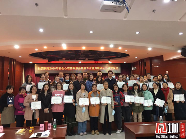 為了貫徹落實(shí)推動(dòng)社會(huì)心理服務(wù)體系建設(shè),為深圳社會(huì)主義先行示范區(qū)在社會(huì)治理與社會(huì)心理服務(wù)方面探索新模式新路徑新服務(wù),羅湖區(qū)桂園街道組織轄區(qū)網(wǎng)格人員、社工、小區(qū)物業(yè)工作人員、轄區(qū)民警及街道工作人員開展系統(tǒng)的《社會(huì)心理服務(wù)專業(yè)能力》培訓(xùn),大家通過48學(xué)時(shí)的理論與實(shí)務(wù)相結(jié)合的培訓(xùn),最終獲得由中國心理衛(wèi)生協(xié)會(huì)頒發(fā)的社會(huì)心理服務(wù)專業(yè)技能結(jié)業(yè)證書。