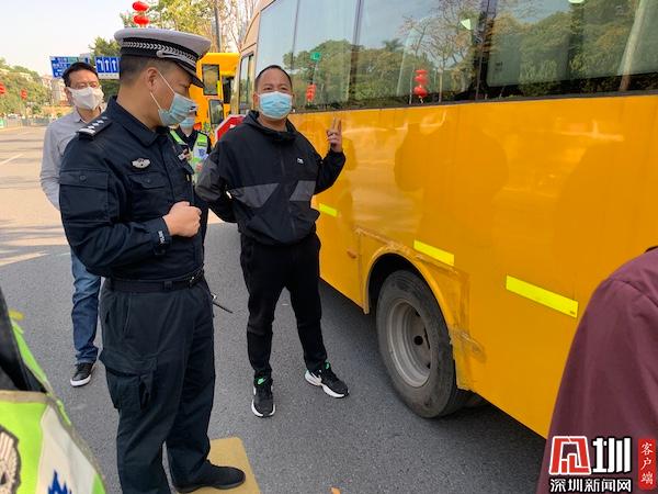 檢查結(jié)束后,羅湖區(qū)教育局局長(zhǎng)殷剛,羅湖交警大隊(duì)副大隊(duì)長(zhǎng)曾品組織現(xiàn)場(chǎng)所有校車(chē)司機(jī)開(kāi)展交通安全教育,提醒校車(chē)司機(jī)要緊繃交通安全這根弦,定期對(duì)校車(chē)進(jìn)行安全技術(shù)檢驗(yàn),嚴(yán)格按照校車(chē)行駛路線、開(kāi)行時(shí)間、??空军c(diǎn)接送學(xué)生,并自覺(jué)做到不超員、超速行駛,確保病車(chē)不上路、上路不違法,以保證學(xué)生路上出行安全。