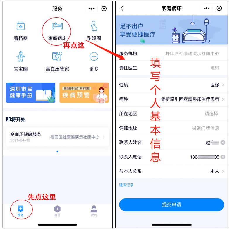 居民向家庭病床服務(wù)機(jī)構(gòu)提出申請,填寫家庭病床申請表,并提供就診記錄、住院小結(jié)、相關(guān)輔助檢查及影像報(bào)告、用藥清單等病歷資料。