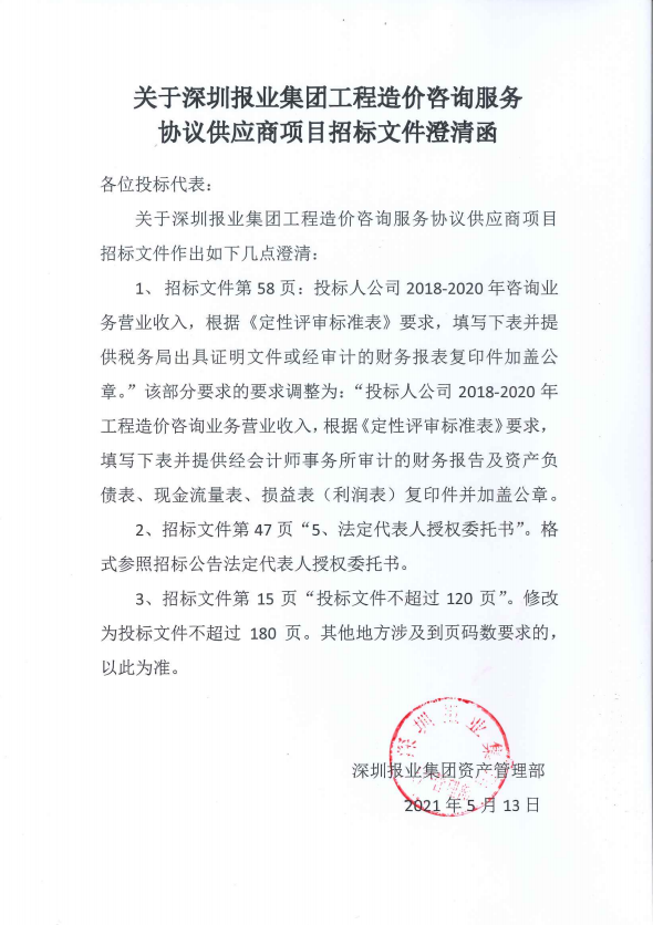 關(guān)于深圳報(bào)業(yè)集團(tuán)工程造價(jià)資訊服務(wù)協(xié)議供應(yīng)商項(xiàng)目招標(biāo)文件澄清函