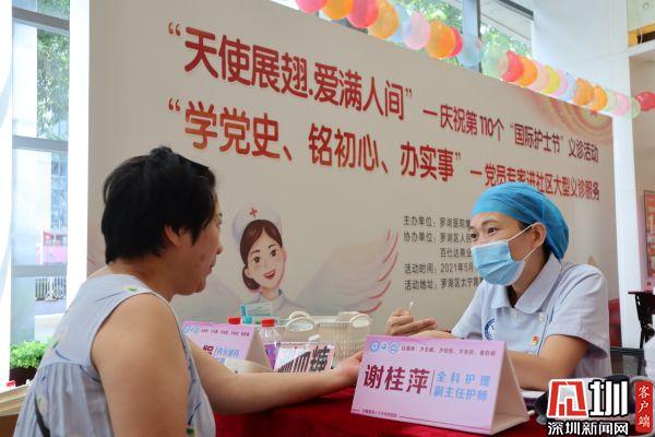 當(dāng)天,羅湖區(qū)人民醫(yī)院老年病院黨支部還與羅湖醫(yī)院集團(tuán)社管中心翠嶺黨支部,在喜薈城舉辦了“學(xué)黨史、銘初心、辦實(shí)事”黨員專家進(jìn)社區(qū)義診服務(wù)暨慶祝第110個(gè)“國際護(hù)士節(jié)”義診活動(dòng),在活動(dòng)現(xiàn)場20余名醫(yī)護(hù)人員給社區(qū)居民提供健康咨詢、健康宣教等服務(wù)。