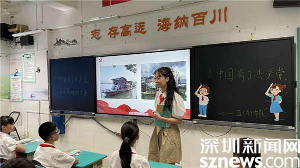 6月16日上午,記者走進深圳市螺嶺外國語實驗學(xué)校,教室里的老師正生動地講述中國共產(chǎn)黨的光輝歷程,通過一張張珍貴的歷史圖片、一段段刻骨銘心的歷史故事,引領(lǐng)同學(xué)們共同追尋紅色記憶、感懷革命精神。