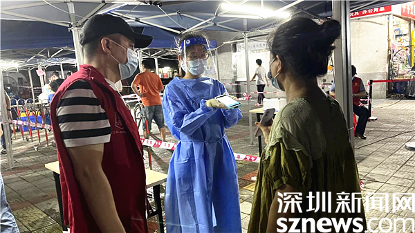 連日來,在羅湖區(qū)各大核酸檢測點,醫(yī)護人員頂著烈日驕陽,身著密閉防護服,戴著隔離面罩,全副武裝奮戰(zhàn)在一線為市民進行核酸檢測。