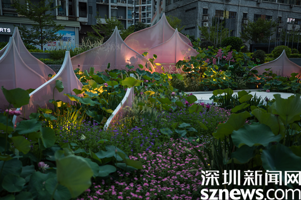 據(jù)介紹,街區(qū)以“花樣水貝、紅荷傳情”為主題,提取荷花、蓮葉等造型元素,應用多品種荷花打造藝術(shù)花境,充分展現(xiàn)荷花的藝術(shù)之美、文化之美。圍繞水貝壹號、水貝金座、水貝銀座、水貝國際等商圈建筑設(shè)置有紅荷傳情、荷葉青青、荷你藕遇、鉆石蓮心、荷荷美美、映日荷花等景點。