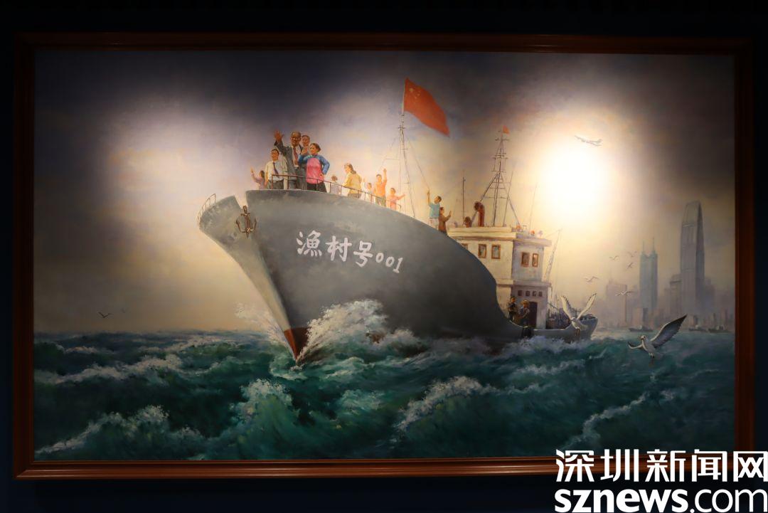 最后,直播鏡頭來到尾廳,這里播放著羅湖形象宣傳片,油畫《勇立潮頭》展示了漁民村在新時代繼續(xù)勇立潮頭的信心和決心。