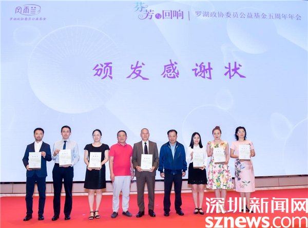 活動(dòng)最后,與會(huì)領(lǐng)導(dǎo)向深圳壹基金公益基金會(huì)、羅湖社會(huì)創(chuàng)新空間和區(qū)政協(xié)歷屆港澳委員聯(lián)誼會(huì)等10個(gè)相關(guān)友好單位和個(gè)人頒發(fā)了感謝狀;向熱心社會(huì)公益、積極捐助善款的19名政協(xié)委員代表頒發(fā)慈善獎(jiǎng)。