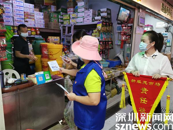 緊接著,東曉街道領(lǐng)導(dǎo)為4名新翠苑市場(chǎng)“治理小縱隊(duì)”隊(duì)長(zhǎng)頒發(fā)“片區(qū)包干責(zé)任狀”,各“小縱隊(duì)”分頭開展“行走街市”“文明創(chuàng)建”和“門前三包”行動(dòng)。值得一提的是,蘭花社區(qū)黨委將新翠苑市場(chǎng)劃分為4個(gè)包干片區(qū),緊扣黨建引領(lǐng)基層治理主弦,組建與包干片區(qū)相對(duì)應(yīng)的“治理小縱隊(duì)”。每個(gè)縱隊(duì)以社區(qū)工作站、新翠苑市場(chǎng)公司、市監(jiān)所及消防站多方責(zé)任主體的黨員為核心,“銀發(fā)”志愿者、清潔工、市場(chǎng)商戶等多元主體共同組成,接受社區(qū)黨委的統(tǒng)一調(diào)度,同時(shí)每個(gè)縱隊(duì)統(tǒng)籌承擔(dān)所屬片區(qū)環(huán)境衛(wèi)生、安全巡查、創(chuàng)文迎檢、食品安全等多項(xiàng)職能,實(shí)現(xiàn)“多能合一,一隊(duì)多能”力量整合,通過(guò)頒發(fā)責(zé)任狀的形式進(jìn)一步強(qiáng)化大家在街市治理中的先鋒意識(shí)、主人翁意識(shí)和責(zé)任意識(shí),使“治理小縱隊(duì)”成為蘭花社區(qū)黨委黨建引領(lǐng)基層精細(xì)化治理的“繡花針”。