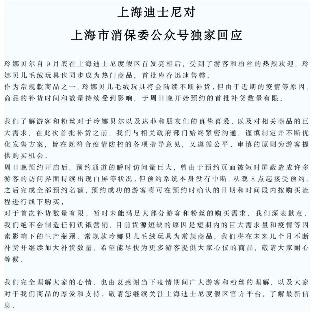 上海迪士尼回應(yīng):將加大補貨數(shù)量