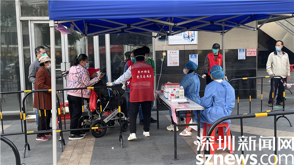 在翠竹街道金翠園核酸檢測點,記者在現(xiàn)場看到核酸檢測隊伍共分成兩條隊伍,居民正按照地面劃好的“一米線”排隊,身穿紅馬甲的社區(qū)工作人員與醫(yī)護(hù)人員正有條不紊地進(jìn)行核酸采樣工作,詢問、登記、采樣......在羅湖的街頭,除了秩序井然的核酸檢測,溫暖的故事也在悄然發(fā)生著。
