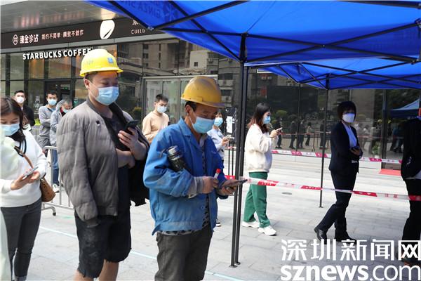 “請(qǐng)戴好口罩,保持一米距離,提前打開健康碼……”走進(jìn)水貝萬山,周邊商場(chǎng)和店鋪均已關(guān)閉進(jìn)行消殺,陸續(xù)有周邊市民在核酸檢測(cè)點(diǎn)有序排隊(duì)檢測(cè)。