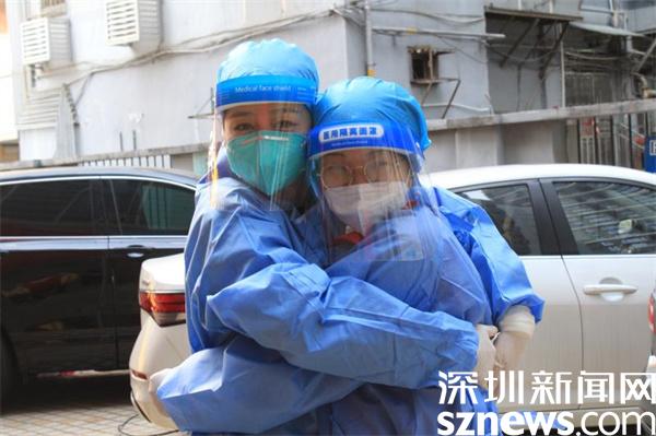 1月11日,深圳突然降溫,風(fēng)大天冷。北風(fēng)呼嘯中,羅湖區(qū)桂園街道老圍社區(qū)禧程酒店的臨時(shí)檢測(cè)點(diǎn)帳篷差點(diǎn)被掀翻。寒風(fēng)刺骨,社區(qū)工作人員和志愿者有條不紊地引導(dǎo)市民有序采樣。工作人員在“風(fēng)口浪尖”上站得久了,被吹得全身透涼,手指頭都冷僵了。瞬間,兩名志愿者緊緊擁抱在一起,相互取暖,以示鼓勵(lì)。隨后,又立刻回到各自崗位,投入緊張的工作中。