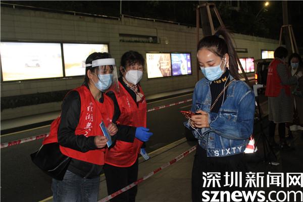 “楊妹,我來(lái)了,還帶來(lái)了一個(gè)人?!?3日晚,正在羅湖區(qū)桂園街道老圍社區(qū)禧程酒店核酸檢測(cè)點(diǎn)忙碌的社工楊女士,接到志愿者溫寶珍的電話。溫寶珍從“0107疫情”開(kāi)始以來(lái),每天都在核酸檢測(cè)點(diǎn)協(xié)助核酸檢測(cè),這晚她把自己的兒媳婦吳永霞也帶來(lái)了?!捌牌艅倧钠渌鐓^(qū)的核酸檢測(cè)點(diǎn)做完義工回來(lái),聽(tīng)說(shuō)老圍社區(qū)需要人,放下飯碗就來(lái)了。婆婆這么大年紀(jì)了還沖在前面,我做兒媳婦的,怎么也要向婆婆學(xué)習(xí)啊?!眳怯老紝?duì)社工說(shuō)?!皯?yīng)該的應(yīng)該的,疫情當(dāng)前,每個(gè)人都有義務(wù)出來(lái)與病毒作戰(zhàn),光是靠社區(qū)工作者不行,他們太累了?!睖貙氄溥呎f(shuō)邊幫兒媳穿好義工服,把粵核酸的二維碼交給兒媳,并教兒媳如何在手機(jī)上查驗(yàn)。