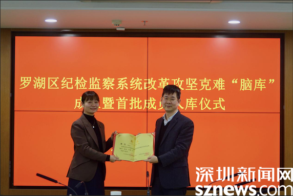 讀特客戶端·深圳新聞網(wǎng)2022年2月12日訊(記者 吳艷 通訊員 曾林 陳心彤)近日,羅湖區(qū)紀(jì)委監(jiān)委召開區(qū)紀(jì)檢監(jiān)察系統(tǒng)改革攻堅(jiān)克難“腦庫”成立(以下簡稱“腦庫”)暨首批成員入庫儀式,22名紀(jì)檢監(jiān)察干部入選首批“腦庫”成員。區(qū)委常委、區(qū)紀(jì)委書記、區(qū)監(jiān)委主任姚文勝向成員代表頒發(fā)聘書并作講話。