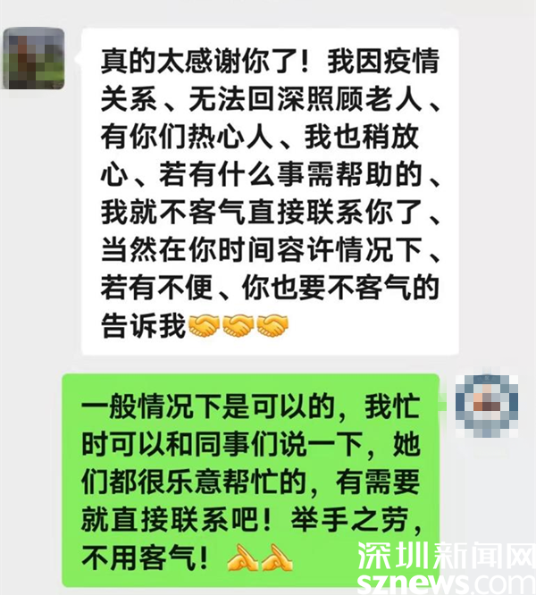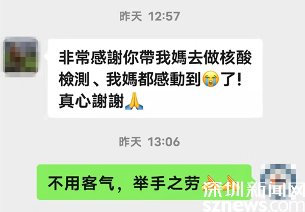 原來,“紅馬甲”是老圍社區(qū)網(wǎng)格員劉珍蓮,她陪老人李曉萍來做核酸檢測(cè)。檢測(cè)順利結(jié)束,老人一激動(dòng),就抱著劉珍蓮哭了起來。事后,老人的兒子,身在香港的溫先生給劉珍蓮發(fā)來微信,說:“非常感謝你帶我媽去做核酸檢測(cè),我媽都感動(dòng)到哭了?!?/p>