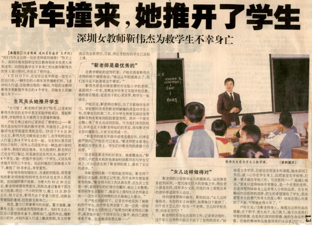 女教師靳偉杰舍身救學(xué)生