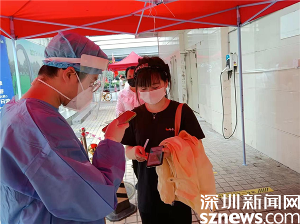 楊帆今年22歲,去年7月份大學(xué)畢業(yè)來(lái)到深圳。他說(shuō),一來(lái)深圳,就愛(ài)上了這座年輕的城市,希望自己能在這里開(kāi)花結(jié)果?!艾F(xiàn)在深圳遇到了難處,作為年輕人,我沒(méi)理由不參與這場(chǎng)戰(zhàn)疫。”他在名仕閣小區(qū)配合同事陳大盛,在隊(duì)伍外圍維持秩序,核實(shí)每個(gè)居民的核酸記錄。