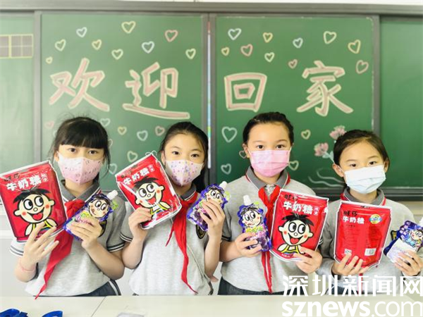 三年級(jí)各班更是個(gè)性十足,旺仔、禮物袋、可吸果凍一應(yīng)俱全,孩子期盼的心被滿滿的愛(ài)充斥著?!皩W(xué)校就是我的家!”
